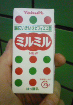 ミルミル!! いやぁ、復活しましたねぇ。 何年ぶりかに飲みました。 デザインも色々と変化してきましたが、いいですね、このポップな水玉。 ストロー差しの感覚は、、 大丈夫、衰えてなかった。 ちょっとどきどきしましたよ、そりゃ。 久々に 「お手合せ願います。」 みたいな感じで、ご無沙汰したミルミルに失礼のないように、手際よくストローを差せるか、ちょっと緊張しました。 自分なりの手順も自然と感覚で思い出して、あの頃の、和歌山の空を思いだしながら、気づけば中身が飛び出さないようにちゃんとコーナーに手を添えて飲んでいました。 「お帰りなさい、ミルミル。」 ミルミル「ビフィズス!!」 ミルミルを飲んで、みるみる胃腸の調子が良くなった、今朝のこぶ兵でした。 稽古、行ってきます。