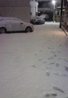 足跡って面白いです。 なんか普段見ないから新鮮だし、人が歩いた経路を見れることが妙に面白い。 昨日の帰りに、自宅へ行くための路地に入った時、その道は自分の前に一人しか歩いた形跡がなく、おお~と思いつつ、サクサクして気持ちいいなぁとか考えてると、ずっとその足跡は自分の向かう道と同じ方向に進んでいて、結局、その足跡は自分の住んでる部屋の隣の隣の部屋へと続いていたのです。 実は隣の隣の人には一度も会ったことがないので、初めましての挨拶は足跡でした。 なんか不思議ですよね。 会ったことない隣人の足跡を見ると。 しかし、やっぱたまに雪を感じると、なかなか良いですね。 ゆきはこんこんのように、猫と一緒にこたつで丸くなりたいなぁと感じた、こぶ兵でした。