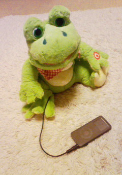 コイツ。 お客様からいただいたモノなんですが、、、 衝撃的な、かわいさです。 この子、iPodなどのポータブルプレイヤーに繋げられるスピーカーなのですが、 音に合わせて踊りながら歌うんです。 その動きが、妙~~にたまらなくて、ついついニコニコしちゃいます。 元気が無い時でも、コイツのダンスを見れば、つまらないことなど、どうでも良くなります。 正月に実家に帰ることができるようになれたので、コイツを連れていって、姪っ子の桃に見せて、どんなリアクションするか試してきます。 多分、泣くかな。 だってこのカエル、動きすぎて机の上から落ちたりするんだもの。 でも、地面に落ちても、踊りつづけます。 すごいプロ意識。 見習います。 皆様、良い週末ナイトを。 僕は明日、稽古です。 |