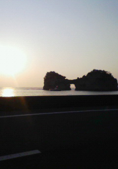 明けましておめでとうございます! ご無沙汰しております、ご無平です。 お正月休み、ほんとにほんと~~に、 ゆっくりさせていただきました。 基本的な動作は、食べる、寝る。 姪の桃子や弟のカンタ(♂)と遊びつつ、ゴロゴーロ。 昨日、初めて桃子は、ママ以外の人にお風呂に入れてもらいました。 僕に。 わはははは かわいかった~。 ちょいと緊張気味の桃子の表情がかわいかったです。 また、和歌山に帰った時の楽しみが増えたんです。 昨日は、久々に南紀白浜の方までみんなでドライブに。 写真は、観光名所である、「円月島」の写真。 海に沈もうとする夕日が とても綺麗でした。 さーて!! 正月休みモードから気持ちを切り替えて、 明日からガランチード稽古再会です!!! ひょほほーーー まぁ、何の擬音語かわかりまへんが、今年一発目の公演にむけて、ぐわんぶわりまぅっす!!! ひょほほーーー! ちょっと気に入った。