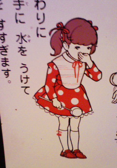 お、こりゃ祭りだな。 なんだか人3、4人しか通れないような小さな鳥居の入り口に人がにぎわっておりました。 ふらふらと引き付けられるように近づくと、その鳥居を皮切りに、奥へと細~い道にそってずらりと出店が並んでいるじゃないですか。 おー楽しそうと思い、鳥居をくぐって歩き始めると、いやびっくり、かなり長い道でした。 150メートル以上、一本の細い道に沿ってびっしり出店でした。 しかも、たくさんの地元小、中学生達がわいわいいて、おじちゃん達が赤い顔して楽しそうで、ここは東京じゃないという錯覚するくらいでした。 その道の先には神社があり、自分が行った時はちょうど、舞台上でおじいさんおばあさんが、何やら弦楽器を弾いていました。 歌は、 「ずんどこ節」です。 リーダー的おばあさんの前にはマイクスタンドがあり、 サビになると、 ずん!ずんずんずんどこ! て叫ぶんです。 最高。 で、写真なんですが、その神社にあった、清めの水の前にあった看板です。 この絵のタッチが、ノスタルジックでいいなぁと思ったんですが、見てください。 水を飲んでる絵なんですが、この女の子、 完全に手ぇの匂い嗅いでますやん。 このちょっと遠い目とかリアルです。 それでちょいと撮っちゃいました。 そんな土曜の夜でした。 皆様も良い夜を。 どうもこんばんは、こぶ兵ジャクソンです。 |