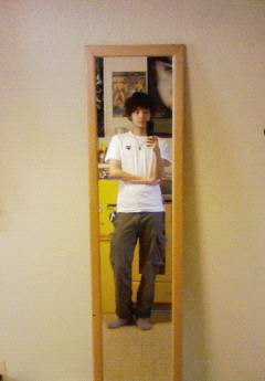 家の姿見の中にいる自分を撮ると、違う世界にいる感じに見えて、少し不思議な気持ちになります。 すんません。 ただそれだけです。 なんか、誰でも一度は考えたことがあるはずなんですが、自分が見てる世界と、他の人が見てる世界って、本当に一緒なのかな?て、たまに思います。 自分が見てる「赤」って、本当にあの「赤」ですよね? こう、なんていうか、ほら、パッと明るくて情熱!みたいな感じで、張りのある色ですよね? そう考えると、不思議な気持ちが止まらなくなります。 だって、普通に思ってる人の形も、他の人の目から見たら、宇宙人みたいな形かもしれないですもんね。 一生自分にしかわかんないし。 ああ不思議。 別に暑いから頭おかしくなったワケではありませんからね。 梅雨もあけそうだし、夏ですね。 今年は絶対ビアガーデン行くぞ~!! 毎度ながら、支離滅裂な文で失礼いたしやした。 皆様、良い熱帯夜を。
