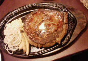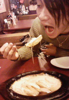 「あ。。。肉が喰いたい。いや、肉を喰らいまくりたい。。」 という結論が出ました。 今日たまたま、用事がありまして、後輩のしげがシアタークリエまで車で迎えに来てくれていたので、しげに 「わりー。肉喰い行くのに付き合ってくれ。」 と伝えました。 ノリの良い肉食獣のしげは 「あ、軽くメシ食ってきちゃったスけど、全然いいよ♪」 と、言ってくれました。 本気でオンリーユーでご一緒させていただいた、尾藤桃子さんに、以前、 「がっつり肉喰うなら、あそこだよ!」 と、教えていただいていた、世田谷の某ステーキハウスに行きました。 いやぁ、、うまい!! やっぱ肉やね! あと、オススメのジャガチーズが、最高。 もうこれでもか!てくらいにたっぷりチーズがポテトにかかっていて、、とろけるとろける! 肉は、1ポンド(450グラム)をがっつきました。 しげもペロリと1ポンド喰らいました。 それでこそ、俺の後輩。 写真で、怪しい笑みを浮かべ、とろーりチーズに喰らいついているのが、しげです。 これで、明日もぶっ飛ばすぜい!! ガォ~ でもガリガリです。 |