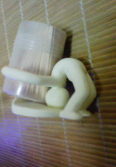 バックドロップしてる人間の、携帯置きです。 こちらは、いつもお世話になってるお客様から 「愉快な仲間の1つとして是非。」 といただいたものです。 なかなか、わかってらっしゃる。。 しかし、普通に携帯を置くのもつまらないので、あえてつまようじ置きにさせていただきました。 こいつ、ずーーっとバックドロップしてはります。 バックドロップで衝撃を与えて攻撃するつもりではなく、このポーズに美学を感じているのでしょう。 意外と優しい男なのですね。 「よぅ、バックドロッパー。これからもよろしくな!チェケ!」 「うるさいわ。こんなしょうもないもんバックドロップさせやがって。もっと金のかかるもんを俺に渡さんかい。ガリガリ天パめ。」 やかましわ。 まぁ、まだ新人なんで、これから教育していきたいと思います。 お前の腰の反り、素敵だぜ! さて、残すところあと4公演、やりまっせ~!