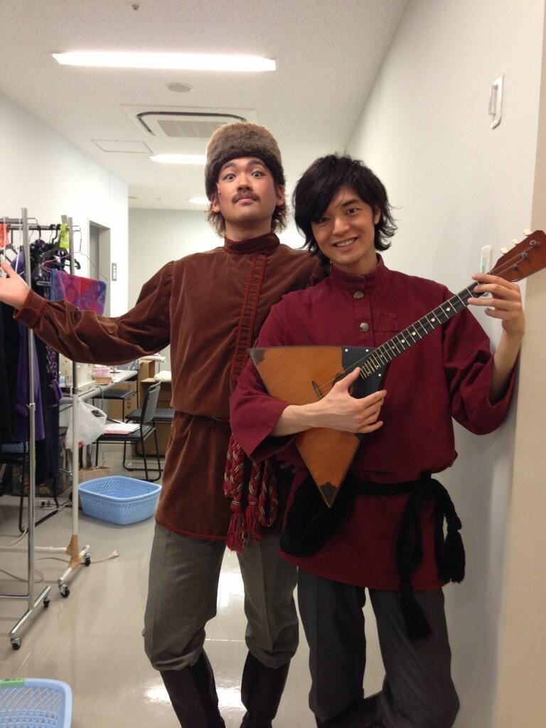 少し遅くなりましたが、 先日、無事に27歳千秋楽を迎え、 4月6日を、もちまして、 28歳の幕が開きました! 28歳の初日と、 屋根の上のヴァイオリン弾き 刈谷公演の初日が偶然、同じということで、 誕生日に舞台に立てるということだけでも幸せなのに、 更にその偶然が重なって、 なんともありがたい誕生日を味わうことができました。 お祝いの気持ちをたくさん下さった皆様!!! 本当にありがとうございました!! 28歳も、日々奮闘して、 エンターティナーとして成長しながら、 たくさん楽しんで生きていきますので、 皆様も、是非僕と一緒に楽しんでいただけたらなと、心から思います!! そうなるよう、沢山、何かを伝えられたらと思います☆ よろしくお願いします!! さて、 屋根の上のヴァイオリン弾き。 愛知県は刈谷での公演も無事終了し、 残すところ、 大阪公演7回となりました! うおおぅ!! チャバとの恋も、 あと7回。。 モーテルの結婚式を祝うのも、あと 7回。。 あと少ししか、 アナテフカで生きることができないと考えると、 やはり 寂しいです。 あと、本当わずかですが、 探求することは終えることなく、 精一杯、 アナテフカで、 笑って、恋をして、泣いて、踊って、 生きたいと思います。 どうぞ最後まで、 応援していただけたらと思います!! よろしくお願いします! 写真は、 カンパニーで同じ誕生日だった、遠藤瑠美子さんと一緒にいただいた、 屋根の皆さんからいただいたケーキの写真と、 ロシアンテナー、奈良坂氏との写真です☆