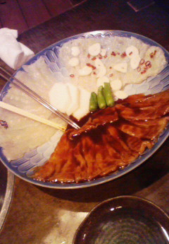 折り返し地点でございます。 幕が開いてから、ノンストップで走っておりますので、 本当に時間が経つのが早く感じます。 まだまだ! まーだまだ探求心だらけでございますよぉ!! もっともっと刀に操られますよ~!! 後半戦スタートですが、毎回気持ちは新鮮に、挑んで行きます。 さかなくんに似てるとたまに言われますが、 ギョギョギョっ! というピチピチな気持ちで。 ぐわんばりまっス! 写真は、先日連れていっていただいた、 焼きフグのお店で撮ったもの。 これ見て下さい。 焼き肉と思うでしょ? ぜーんぶフグなんです。 グーフーです。 分厚く切って、塩ダレやニンニク、辛味ダレなどを絡ませたグーフーを網であぶって、ちーくーにほおりこんで、、、 うぅまぁいっ!! これほどうまいものを食うたのは初めてじゃぁ!!爆(小春丸) いやぁ、美味しかったです。 すいません、自慢で終わってしまいました。 フグパワーで、ギョギョギョ!! と残り半分の公演、楽しみたいと思います! では! 皆様、良いお休みを!
