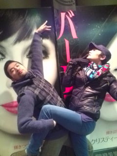 稽古がたまたま早く終わったので おお!!これはチャンス! 今日こそバーレスク観よう!! そう思って、映画館に足を運ばせました。 上映時間まで少しあったので、隣のコンビニで飲み物見てると、、 隣で飲み物探してる人が、 ぺんぺんこと天辺さん。 耕「おお!!何してんの!?」 天「これからバーレスク観るんだよねー」 耕「俺もなんスけど!!」 天「えーーー!?」 てな感じになり、 そしたらぺんぺんが 「今からまゆみも来るよん」 て言ったんです。 はい、明星さんです。 たまたまぺんぺんが明星さんを誘っていて、それがたまたま僕と同じ時間、同じ映画館だったんです。 一人での映画鑑賞が、三人のゴッドスペラーで観ることに♪ バーレスク、最初は「ん?振りとか完全フォッシー系、てゆーかキャバレー?」 とか思ったんですが、その先はそうではなく、わかりやすくてすごく楽しかったです。 とにかく、やはりアギレラさんの歌がやばすぎるのと、ジャックがカッコ良すぎでした。 田舎娘の変わりっぷりたらまぁ見事。 ダンスが好きな方は絶対好きだと思います。 しかしながら、隣のぺんぺんのリアクションがいちいち面白くて、ダブルで楽しかったです。 いやぁ、この偶然はジーザスの思し召しかなと感じ、嬉しくなりすぎて思わずジーザスに報告したこぶ兵でした。 写真は、見終わったあと 「踊りたくなるね♪」 とか言って調子のって撮ってもらった、ダンス好きこぶ兵とぺんぺんのコラボです。 明日も頑張ります!