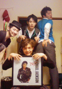 明日は休演日! 雨らしいので、おとなし~く身体を休めたいと思います。 いやいや、 もう3分の1終わっちゃったんですね、、、 はやい!!! ちょいと神さん、もう少し時間が経つのを遅くしてもらえませんか? 小学生の時みたいに。 とにもかくにも、明後日からまたぶっ飛ばしていきたいと思います! 写真は、僕の親友たち。 改めて紹介させていただきます。 まずは一番左。 しんちゃん。 DEVAKINGSの相方です。 高校のクラスメイト、しかも2年間一緒。 すべては彼とスタートしました。 お互い一番理解しあってる、最高のパートナーです。 しんちゃんに出会えたことが、僕の人生の財産です。 続いて真ん中上。 しげ。 こいつは、高校の一個下の後輩で、同じストリートパフォーマンス部に所属しておりました。 今は、DEVAKINGSと一緒にショータイムに出るチームメイトです。 本当に、、 かわいい奴。 弟です。もはや。 そして、税理士です。 学校にはほとんどいないし、授業全然聞いてないのに、頭めちゃくちゃいい。 いわゆる少年マンガの主人公タイプです。 そして一番右のバカ。 この中でも最も多い時間を過ごしている、えつや。 こいつも高校2年間同じクラスでした。 言わずと知れた、週5日、しかも1日2レッスン通う、ダンスとミュージカルをこよなく愛するエリート商社マン。 相変わらず、ポーズにムカつきます。 とにかく、 みんな大好きです。 親友です。 いつか、このメンバーで、僕達にしかできないエンターテイメントができればなぁと、真剣に思ってます。 いや、絶対やってやります。 誕生日に集まってくれて、マイケル額入りピクチャーをくれました。 みんな最高の奴らなんで、どうぞよろしくです。 なんのこっちゃ。笑 では、、 休みまくりマクリスティーします!