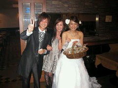 前にも紹介させていただきましたが、和歌山にいる僕のいとこのえいくんこと、栄作君と、かおりさんが、先日ついに結婚式を挙げました。 いやいや、小さい時からいつも一緒に遊んでた、えいくんと、弟のかっかん。 そのえいくんが、結婚か、。 奥さんのかおりさんも、とっても素敵な方で、幸せそうな二人を見ると、嬉しくなります。 なんかしみじみ、世代って本当に、こうやって交代していくんだなぁと、感じました。 えいくんは子供の頃からのイメージが強いから、そのうちパパになるんやろなぁとか考えると、 いやぁ、笑うわ。 子供に 「あかんでぇ!!」 とか、かん高い声で怒ってる姿が浮かんできて、笑ってしまうんです。 もちろん、とっても幸せな笑いですよ。 ちなみに、、 僕はパッチギ稽古の真っ最中なんで和歌山に帰れなかったので、残念でした。。 写真は、えいくん夫婦と、僕のおかんと、 もう1枚はお姉と久々桃ちゃん。 でかくなりましたわぁ、桃ちゃん。 てかすいません。 身内ネタオンリーで。 まぁ一生に一度のことなので、今夜はえいくんかおりちゃんをこのブログでも祝したいと思います。 そんな幸せパワーで元気をもらって、明日からも稽古、頑張りまーす!!