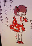お、こりゃ祭りだな。 なんだか人3、4人しか通れないような小さな鳥居の入り口に人がにぎわっておりました。 ふらふらと引き付けられるように近づくと、その鳥居を皮切りに、奥へと細~い道にそってずらりと出店が並んでいるじゃないですか。 おー楽しそうと思い、鳥居をくぐって歩き始めると、いやびっくり、かなり長い道でした。 150メートル以上、一本の細い道に沿ってびっしり出店でした。 しかも、たくさんの地元小、中学生達がわいわいいて、おじちゃん達が赤い顔して楽しそうで、ここは東京じゃないという錯覚するくらいでした。 その道の先には神社があり、自分が行った時はちょうど、舞台上でおじいさんおばあさんが、何やら弦楽器を弾いていました。 歌は、 「ずんどこ節」です。 リーダー的おばあさんの前にはマイクスタンドがあり、 サビになると、 ずん!ずんずんずんどこ! て叫ぶんです。 最高。 で、写真なんですが、その神社にあった、清めの水の前にあった看板です。 この絵のタッチが、ノスタルジックでいいなぁと思ったんですが、見てください。 水を飲んでる絵なんですが、この女の子、 完全に手ぇの匂い嗅いでますやん。 このちょっと遠い目とかリアルです。 それでちょいと撮っちゃいました。 そんな土曜の夜でした。 皆様も良い夜を。 どうもこんばんは、こぶ兵ジャクソンです。 |